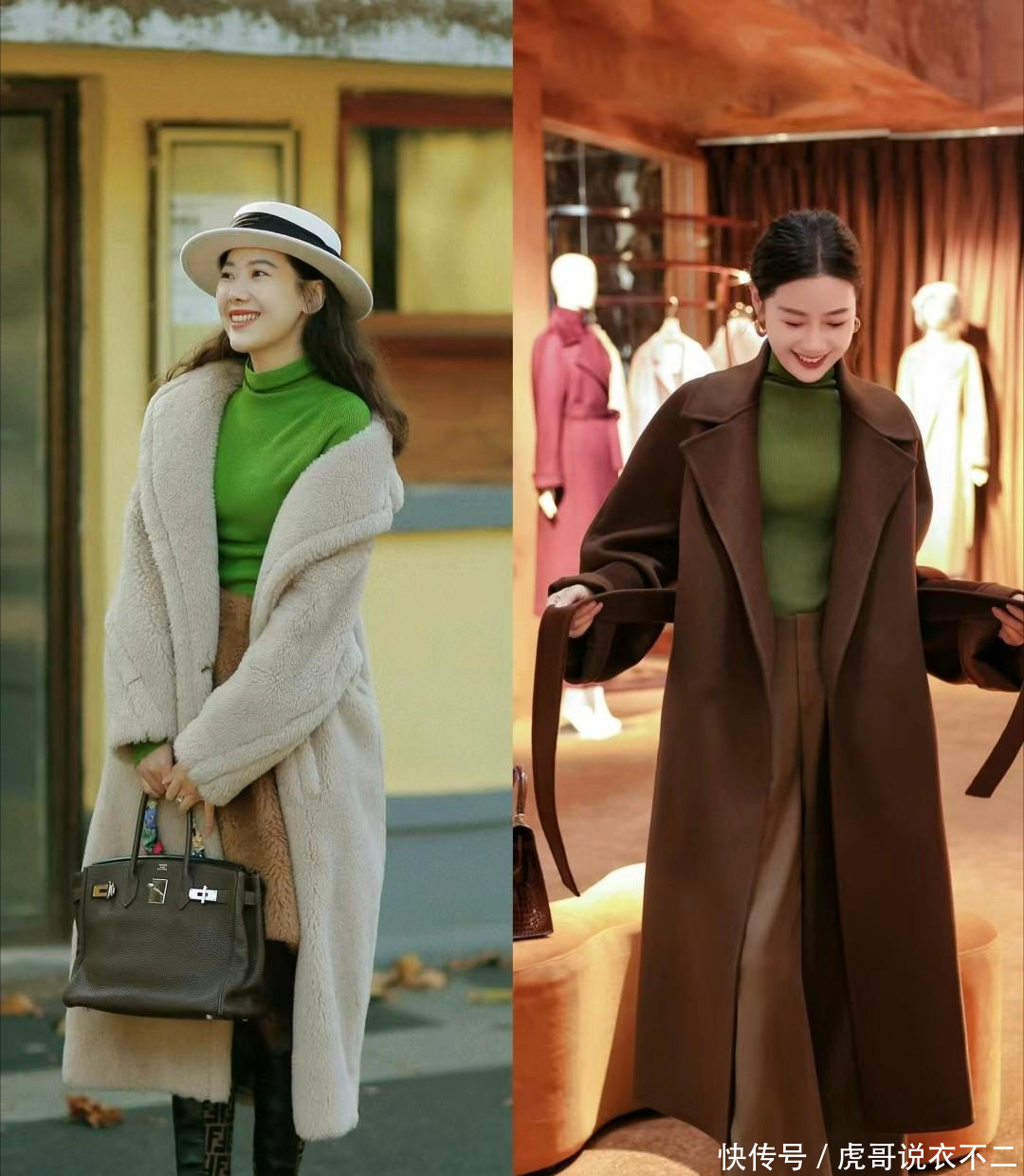 而与绿色的碰撞,则让大地色系展现出了更加生动而活泼的一面。大地色大衣与绿色打底衫的搭配,既保留了大地色系的沉稳与内敛,又融入了绿色的清新与活力。这种配色不仅让整体穿搭更加时尚而新潮,还能在视觉上提升整体造型的层次感。